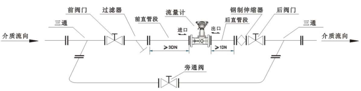 旋进旋涡流量计流量计上游的应有至少10D长度的计量直管段。直管段内壁应光滑、更不能有台阶,磨平连接法兰的焊缝,法兰垫片不能突入管道内。更不能把流量计的安装方向装反了。试验证明:一切不合理的安装,都将导致流量计计量值偏低。