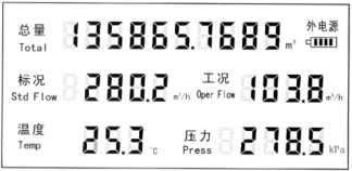 2、总量(标准体积)zui小保留小数后2位,zui大值为99999m3/h,当超出时,示值出现闪烁, 此时实际值为示值的10倍。