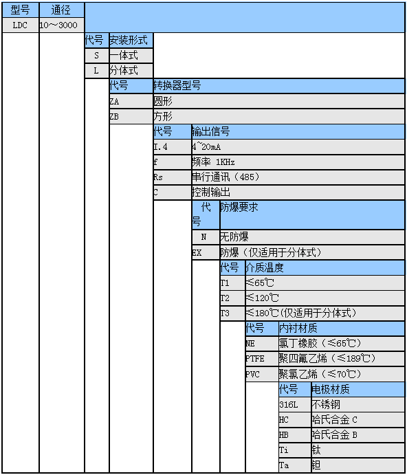 四、不锈钢电磁流量计选型型谱